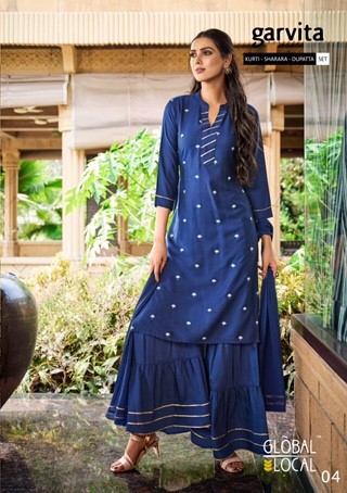 Catalog online- Brand: Global Local Garvita Silk Kurti With Sharara And Dupatta Wholsale Catalog Catalog is made by popular brand know as Global Local