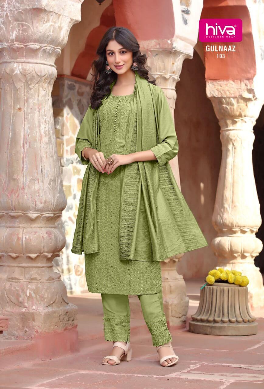 - Delivery: Estimate delivery time would be 5- 7 Working days. hiva Gulnaaz Churidar Salwar Suits Catalog at Wholesale Rate Can be delivered all over in Surat and all part of India. We deliver in Bangladesh, USA, UK, Australia, Saudi Arabia, Fiji etc, World Wide shipping