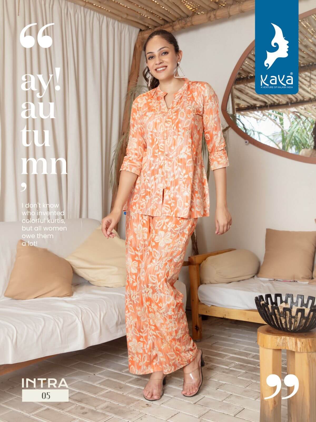 Catalog online- Brand: Kaya Intra Co Ord Set Kurtis with bottom Catalog at Wholesale Rate Catalog is made by popular brand know as Kaya