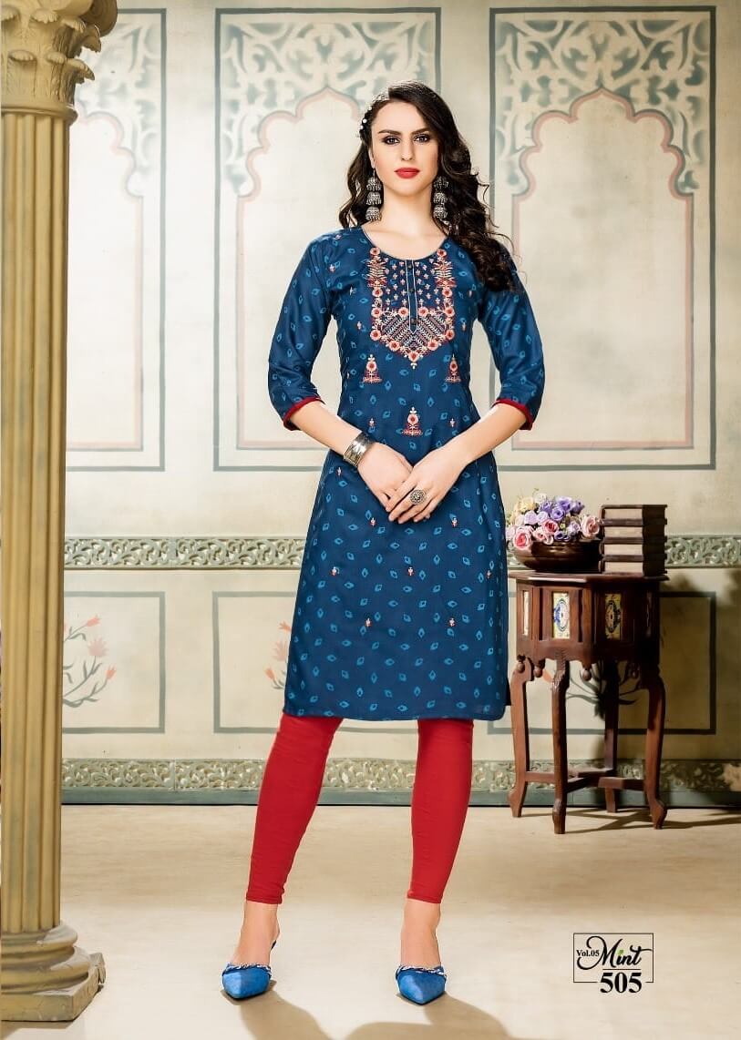 Catalog online- Brand: Kinti Mint vol 5 Straight Cut Kurti Catalog at Wholesale Rate Catalog is made by popular brand know as Kinti