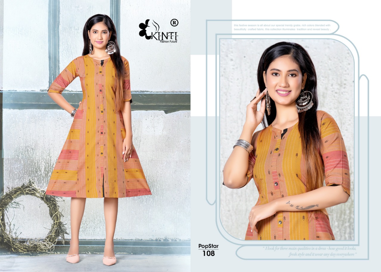 Catalog online- Brand: Kinti Popstar A Line Kurti Catalog at Wholesale Rate Catalog is made by popular brand know as Kinti