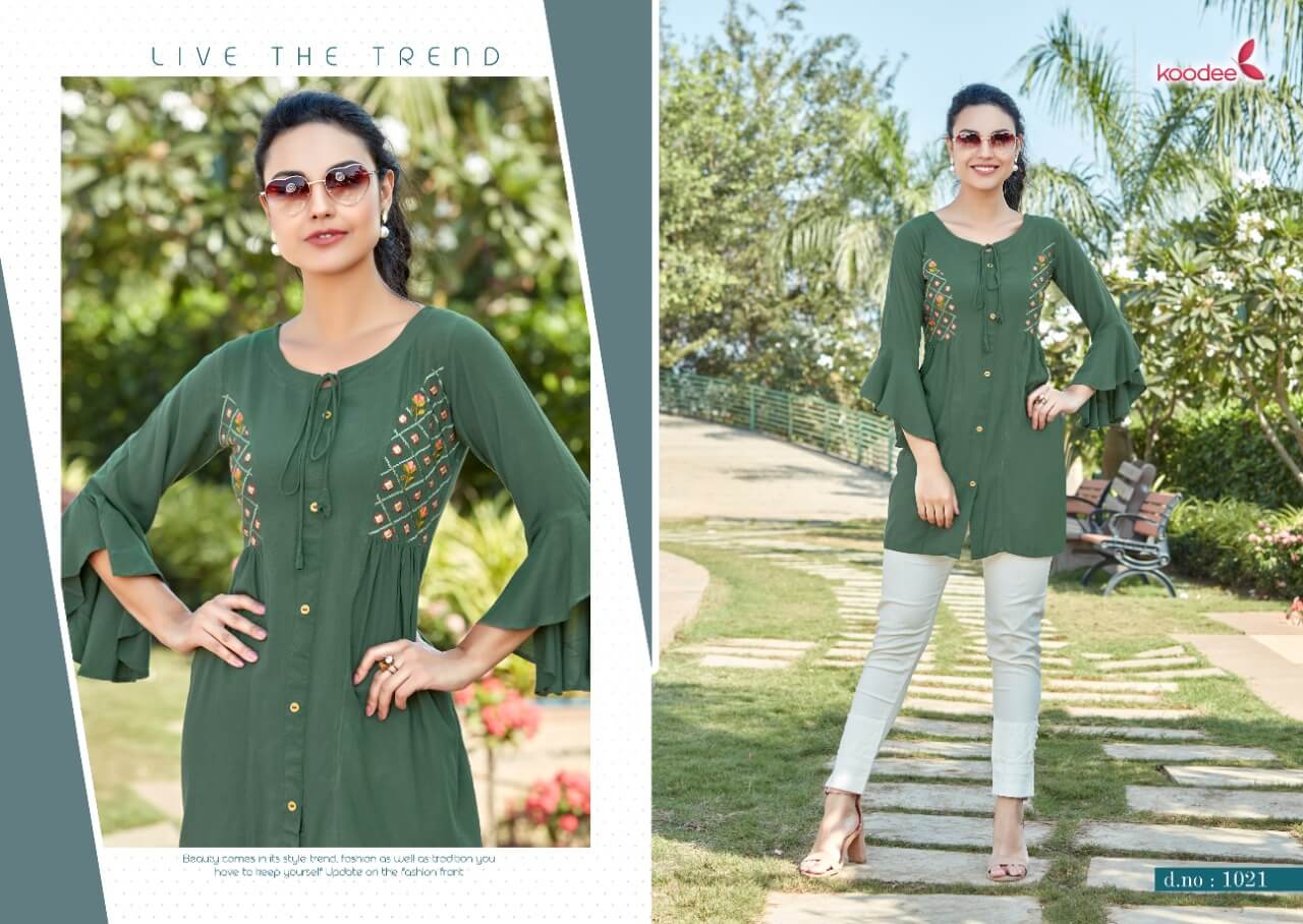 - Delivery: Estimate delivery time would be 5- 7 Working days. Koodee Videshi Vol 4 Ladies Tops Catalog At Wholesale Rate Can be delivered all over in Surat and all part of India. We deliver in Bangladesh, USA, UK, Australia, Saudi Arabia, Fiji etc, World Wide shipping