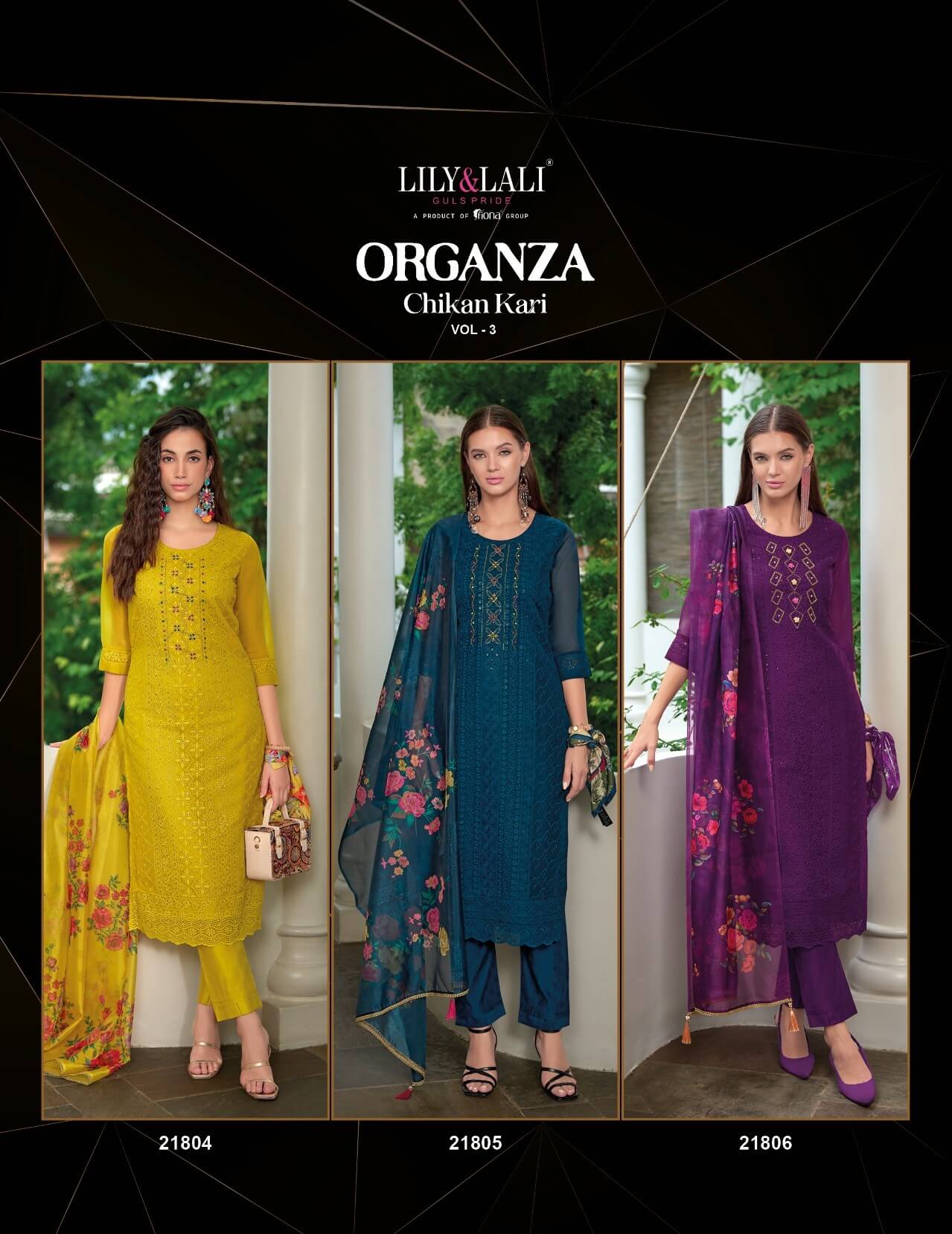 - Price: You can buy Lily Lali Organza Chikankari Vol 3 Embroidery Salwar Kameez Catalog at Wholesale Rate full catalog at wholesale price ₹8,159 and weight of catalog is 6 KG