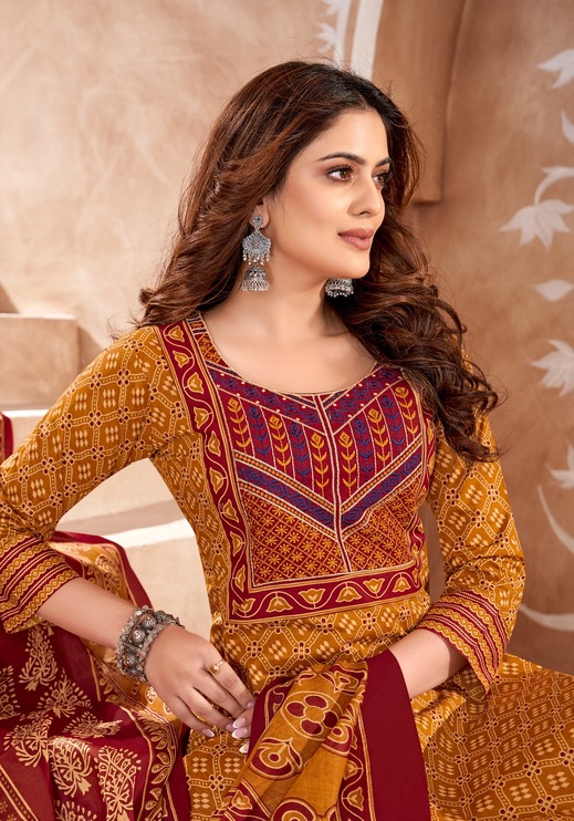 1. Brand: Mayur Creation Ajrakh Vol 6 Cotton Salwar Kameez Catalog at Wholesale Rate Catalog is made by popular brand know as Mayur Creation