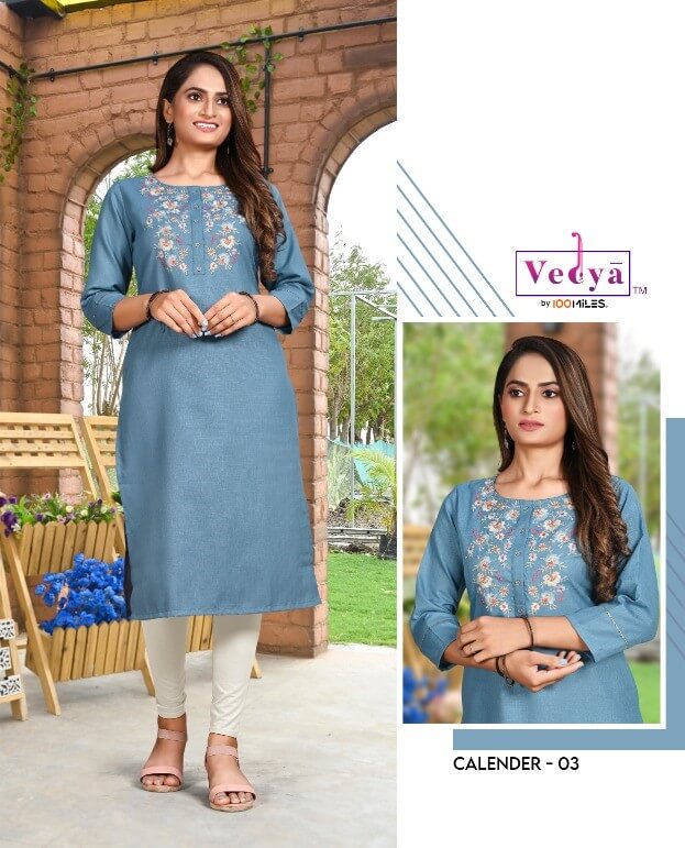 Catalog online- Brand: Vedya Calender Casual Wear Kurti Catalog at Wholesale Rate Catalog is made by popular brand know as Vedya