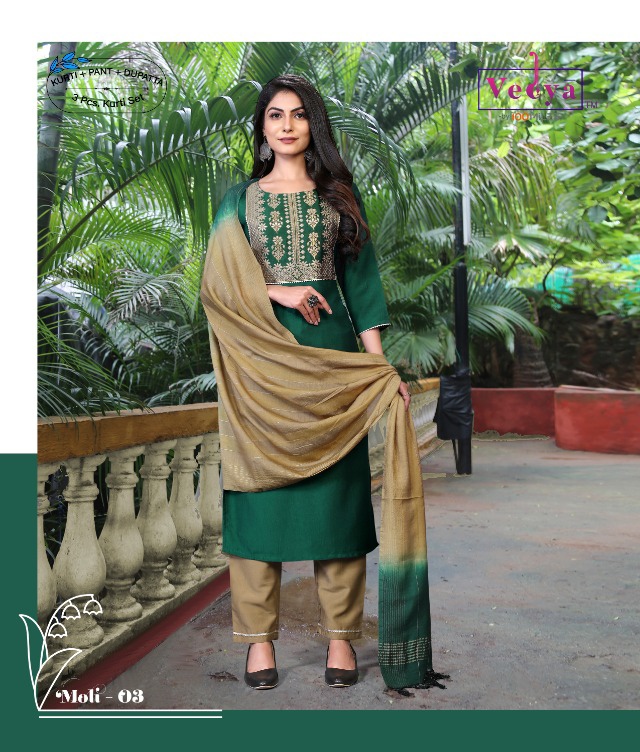 - Price: You can buy Vedya Moli Readymade Dress Catalog At Wholesale Rate full catalog at wholesale price ₹3,402 and weight of catalog is 3 KG